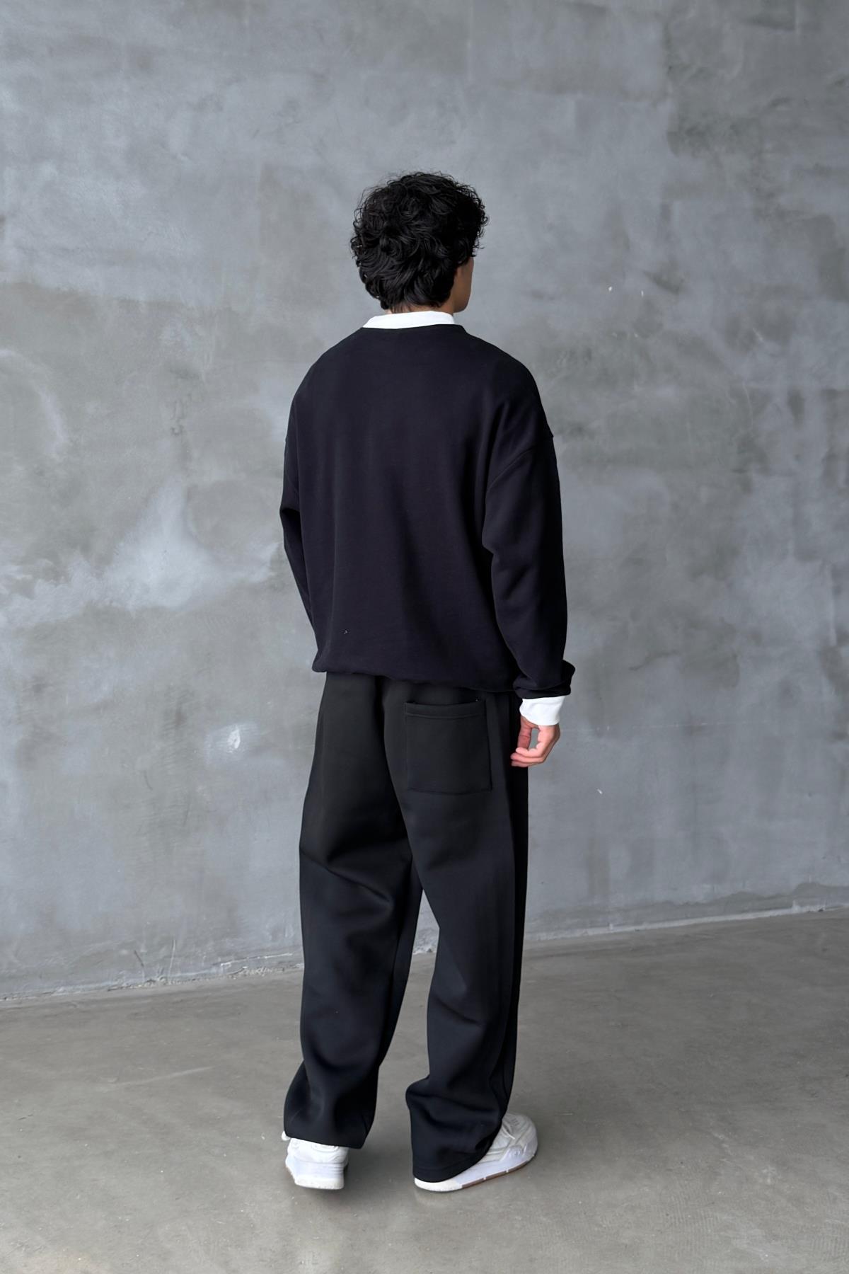 Athletic Baskılı Siyah Oversize Sweatshirt SR01 (P-007057)