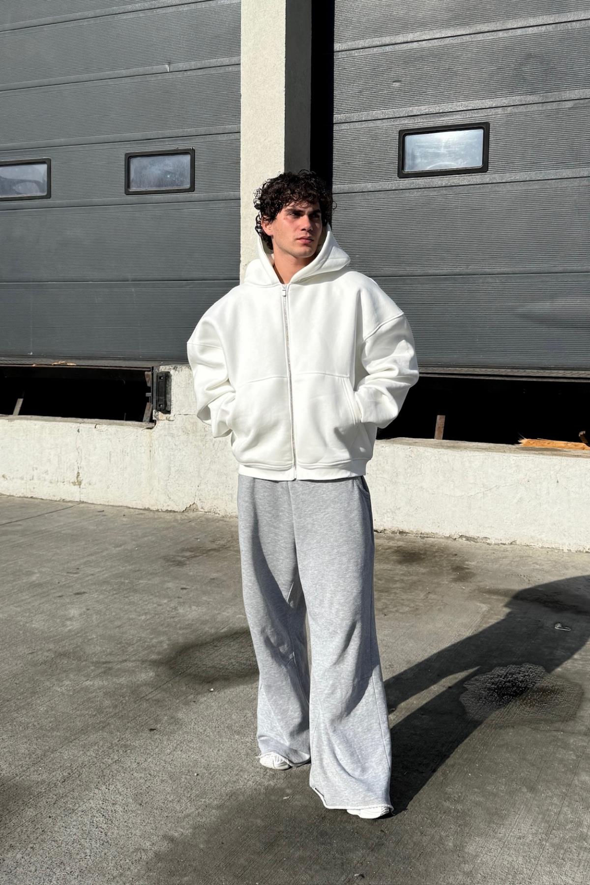 Basic Ekru Oversize Zipper Sweatshirt JC01 (P-007014)