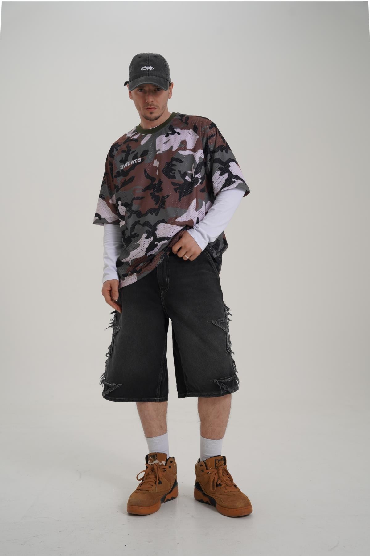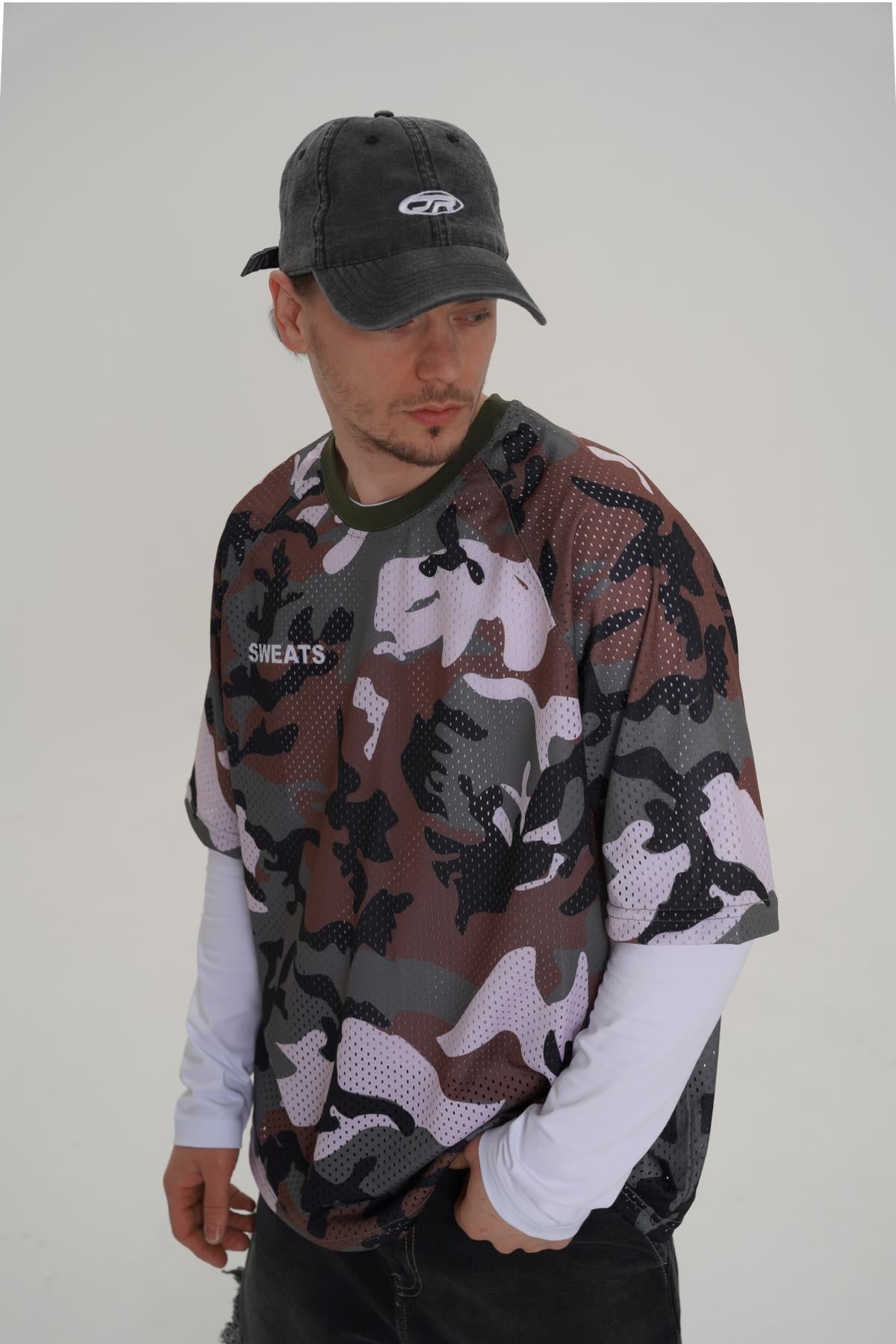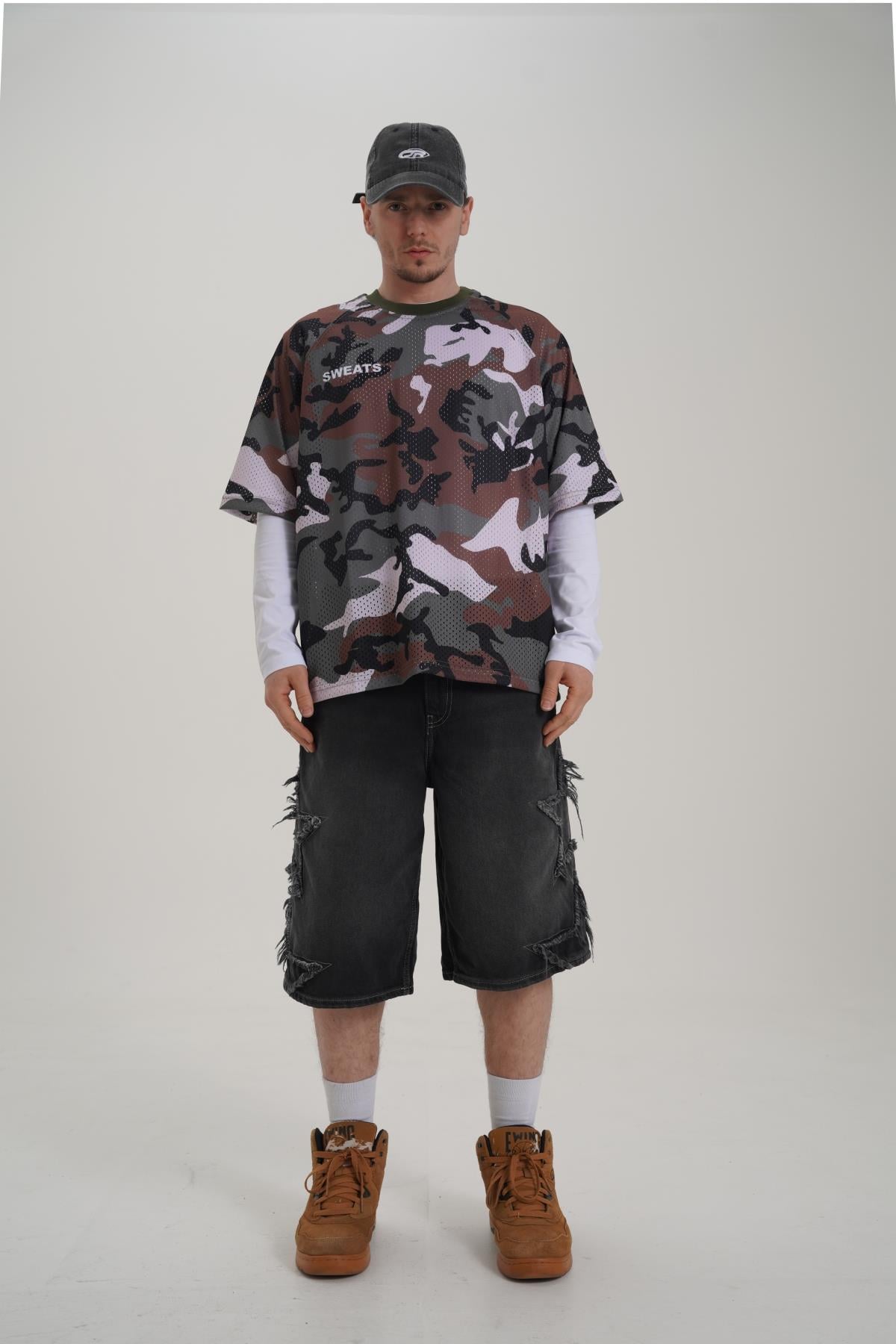 Baskılı Oversize Kamuflaj Forma Tshirt PM01 26Y264 (P-008352)
