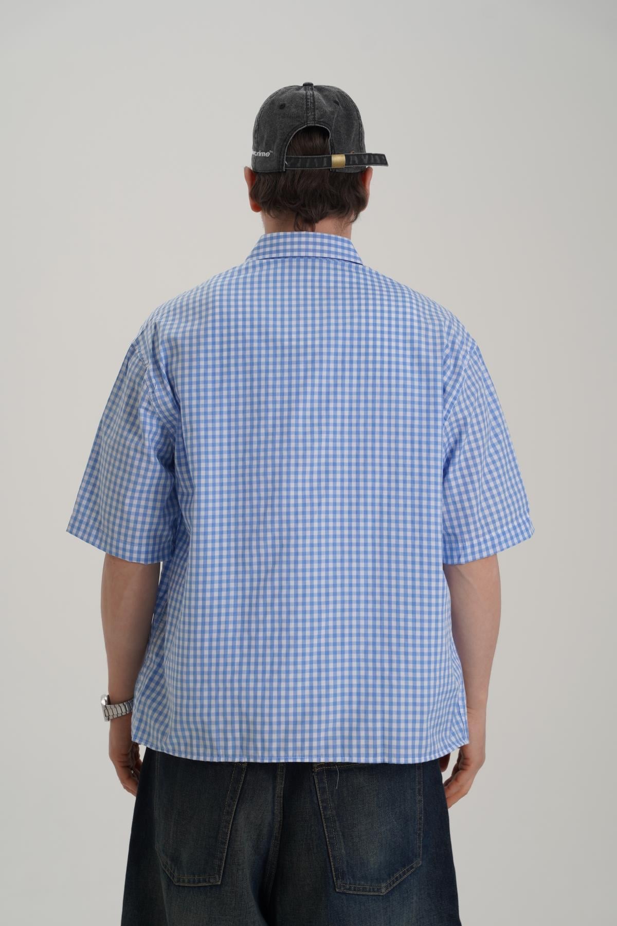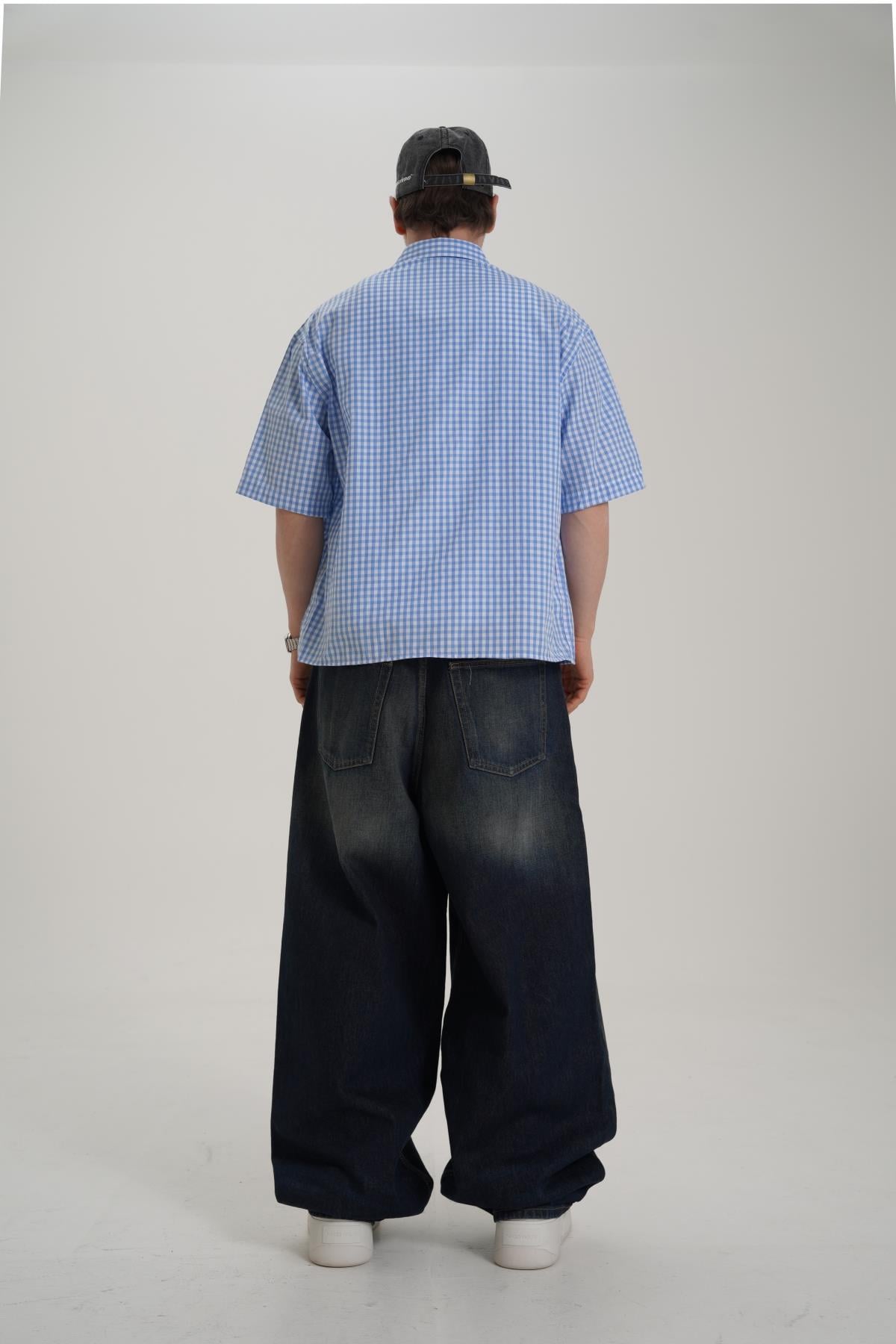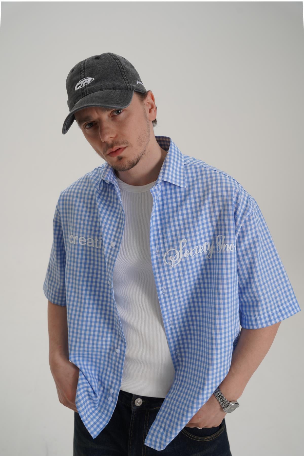 Creative Baskılı Mavi Oversize Ekose Gömlek PM01 26Y285 (P-008355)