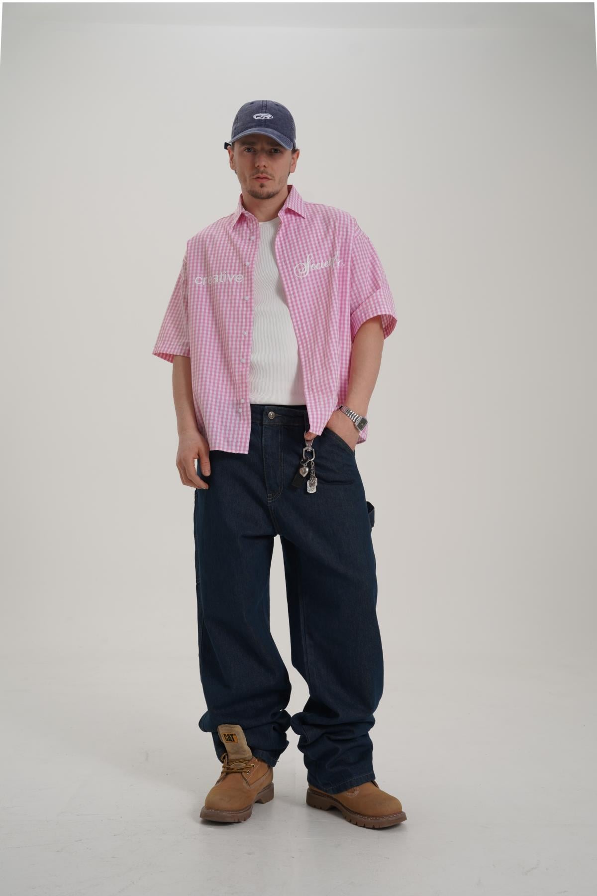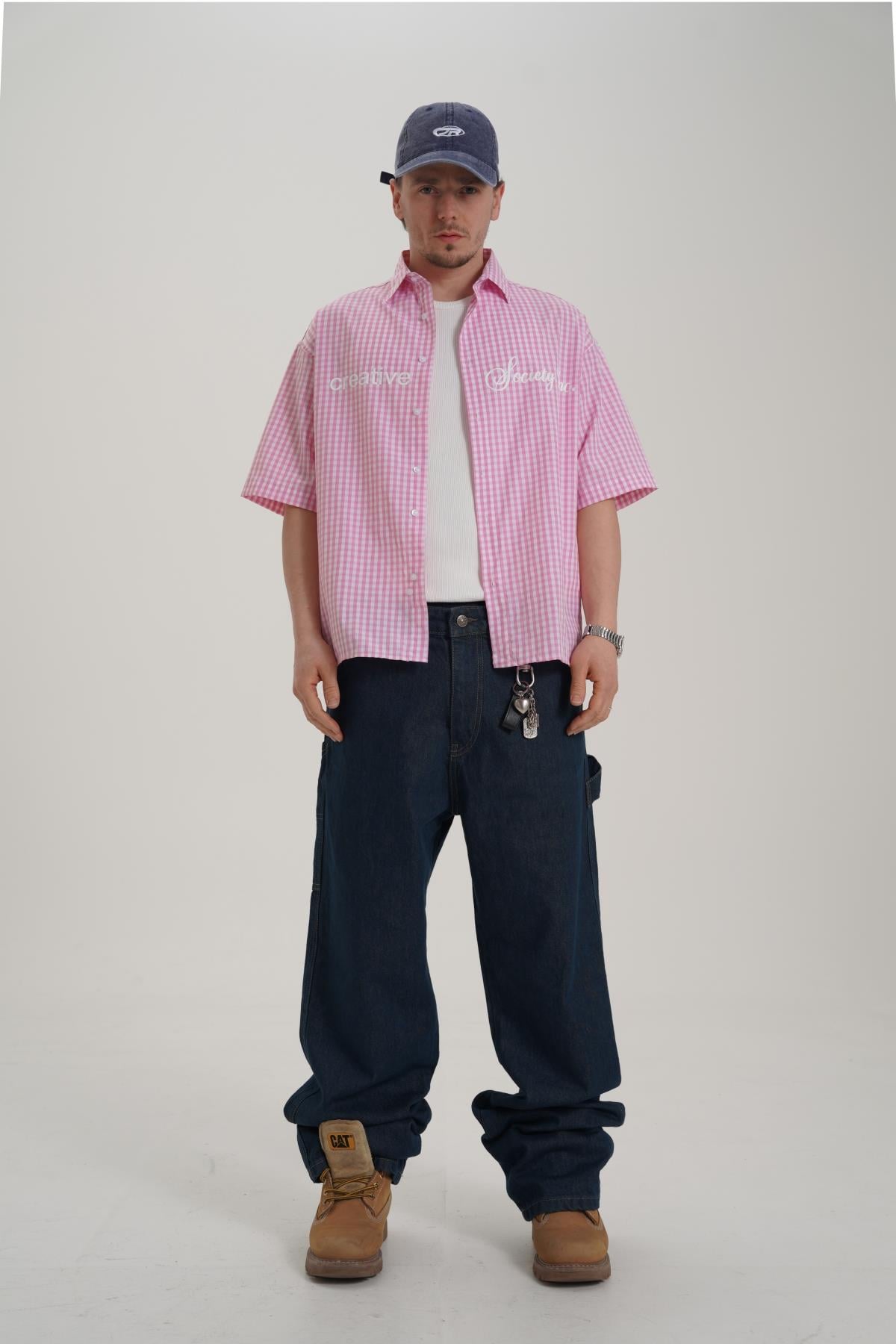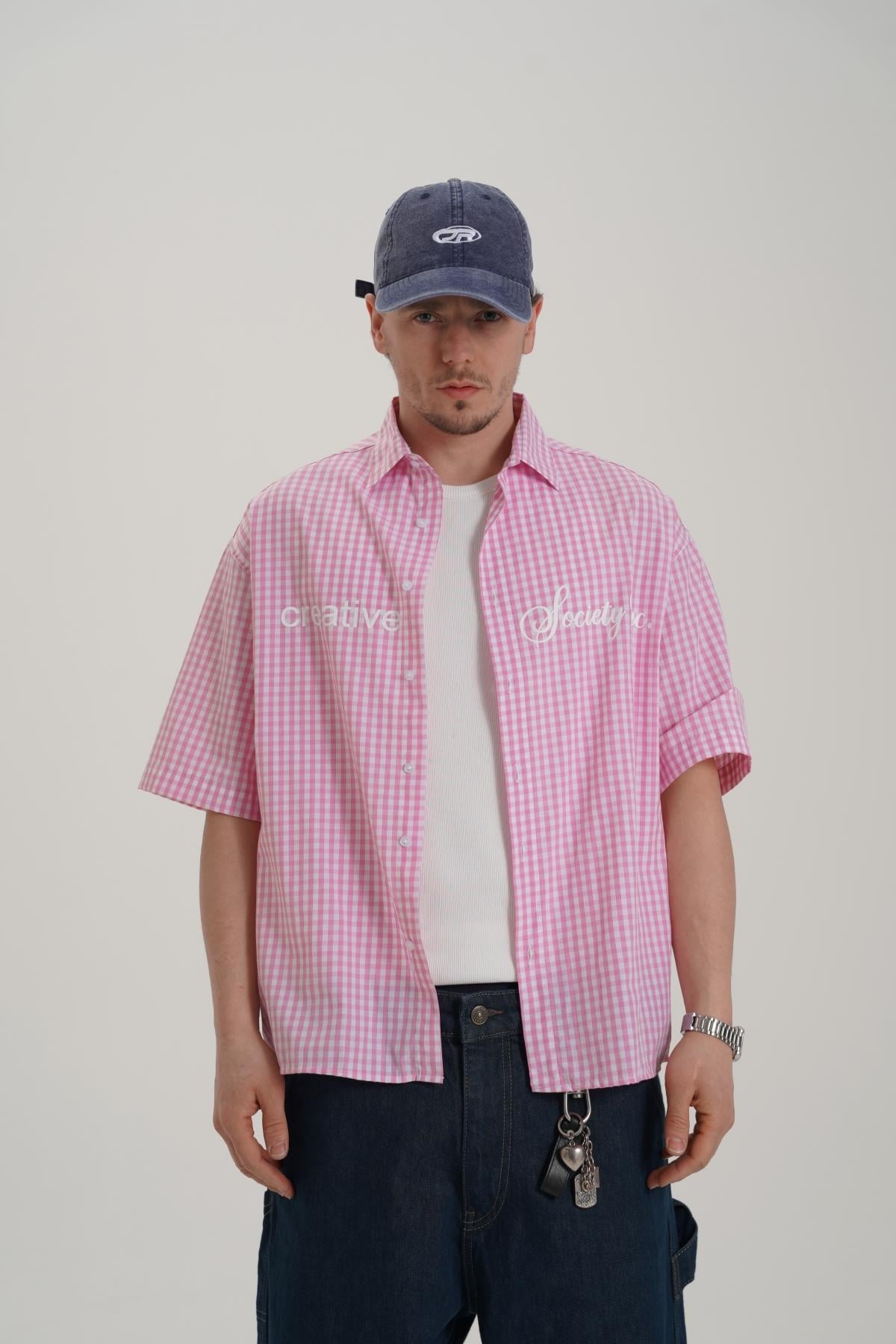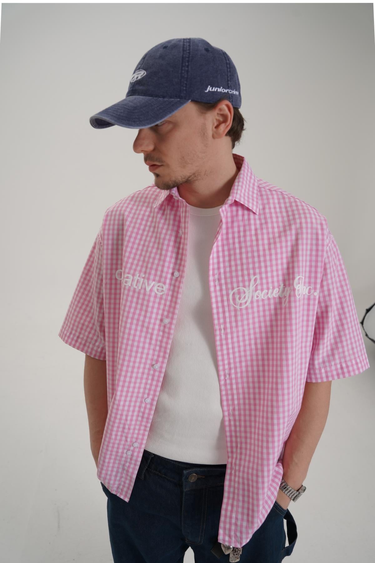 Creative Baskılı Pembe Oversize Ekose Gömlek PM01 26Y285 (P-008354)