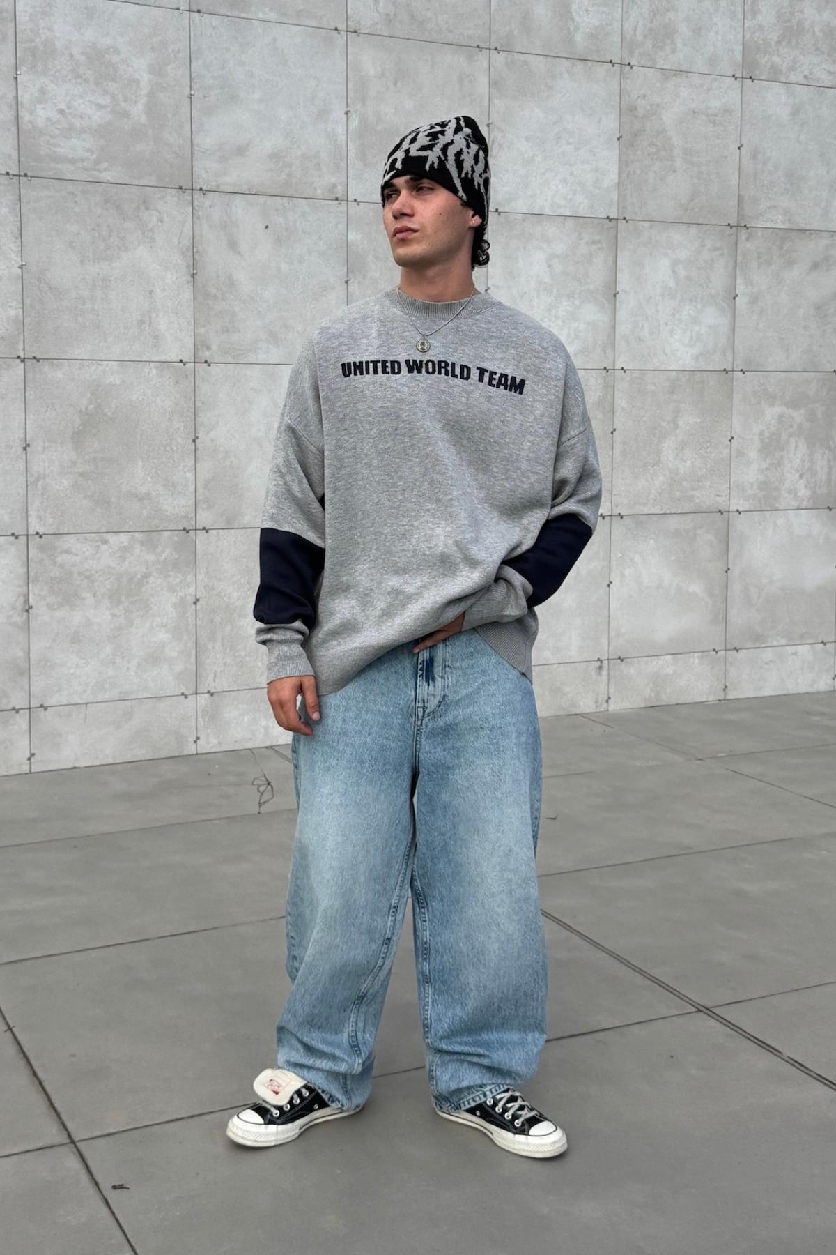 Desenli Oversize Gri Kazak JC01 (P-006979)