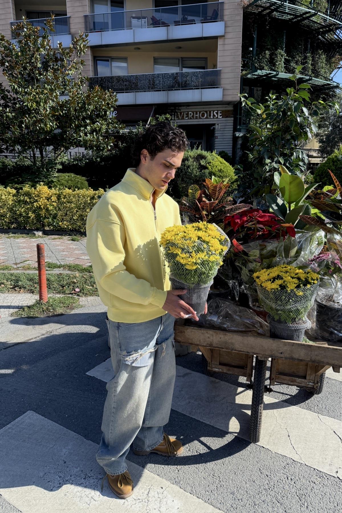 Fermuar Yaka Oversize Sarı Sweatshirt JC01 (P-006904)