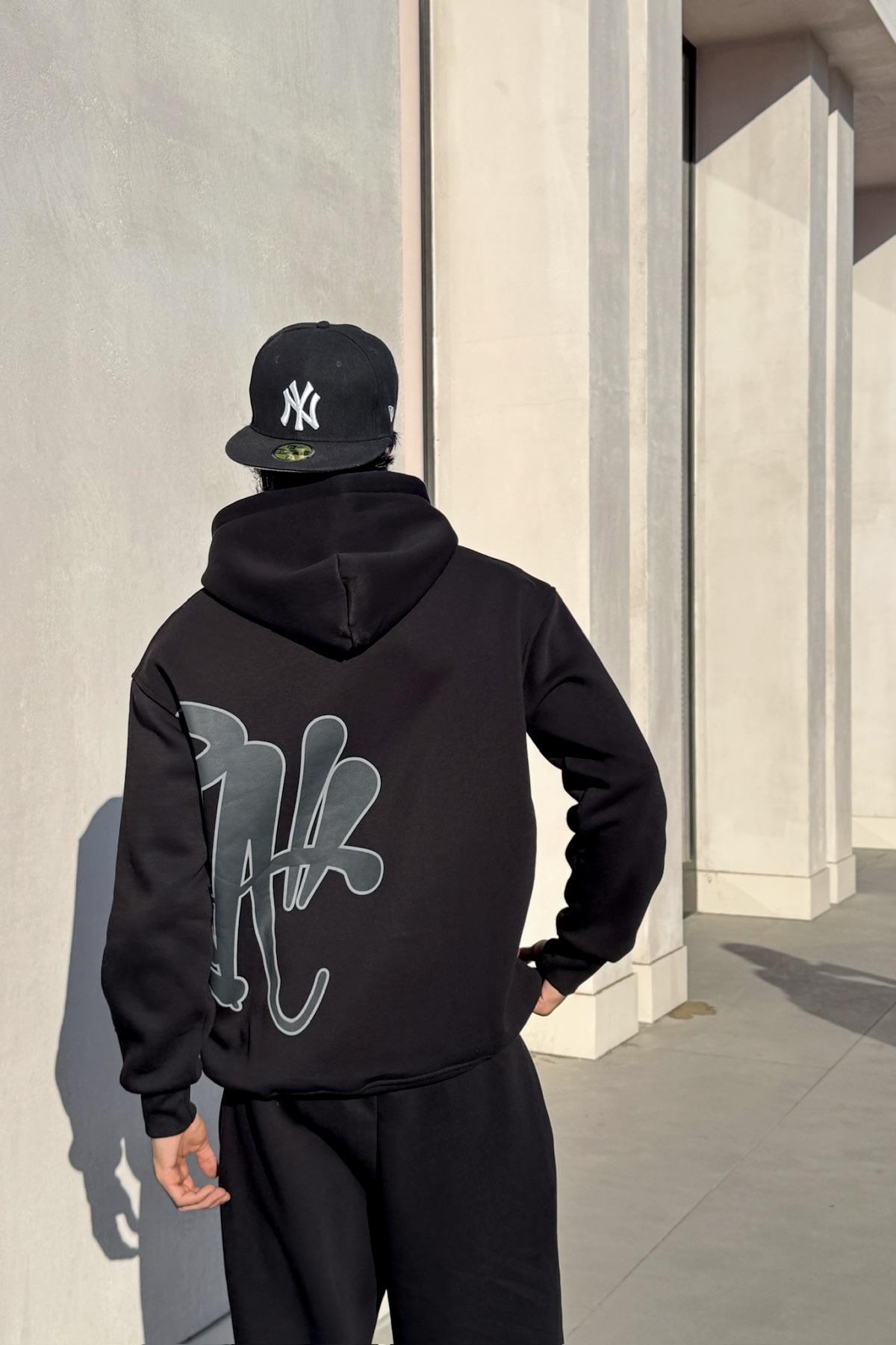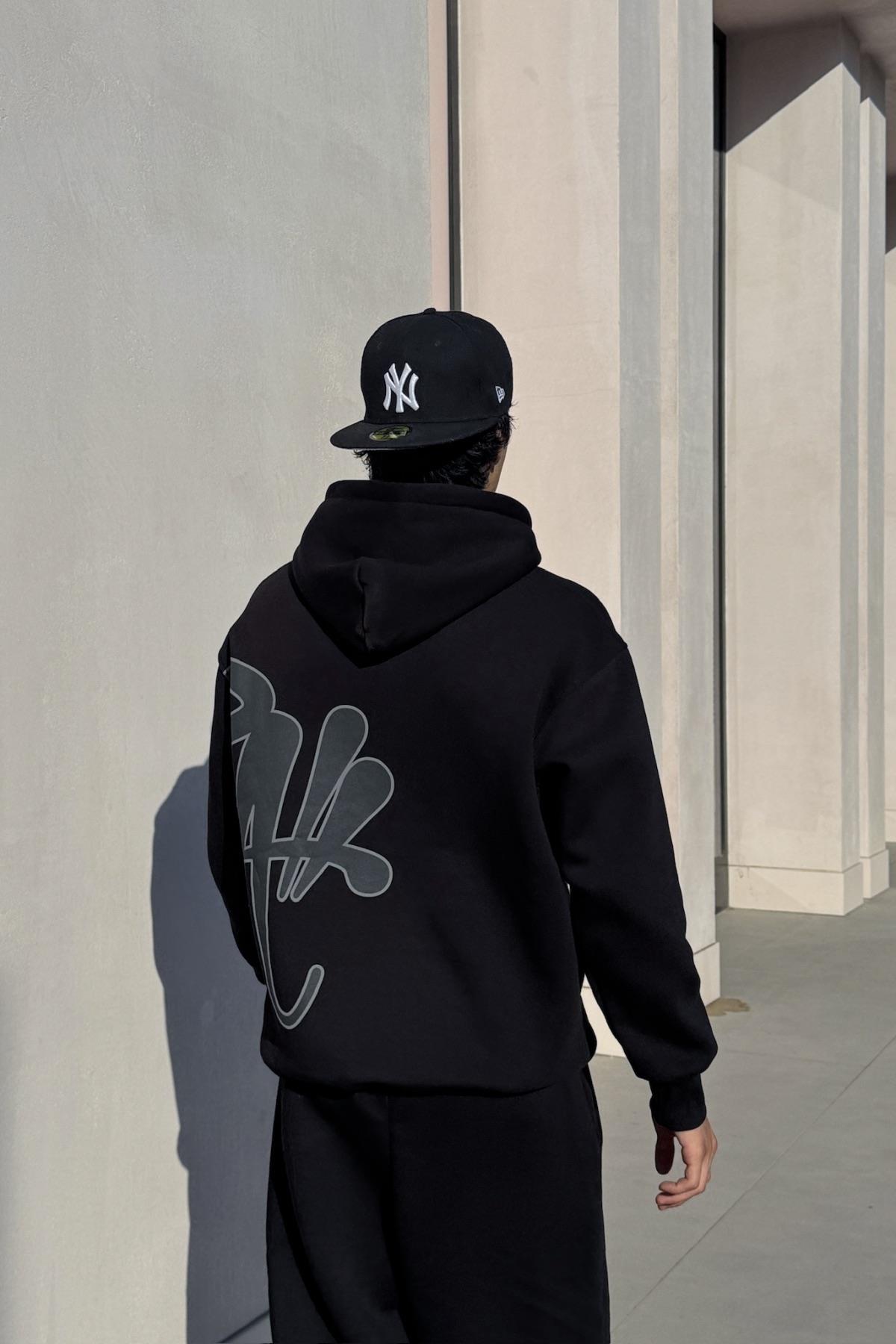 Graffiti Baskılı Siyah Oversize Hoodie (P-006880)