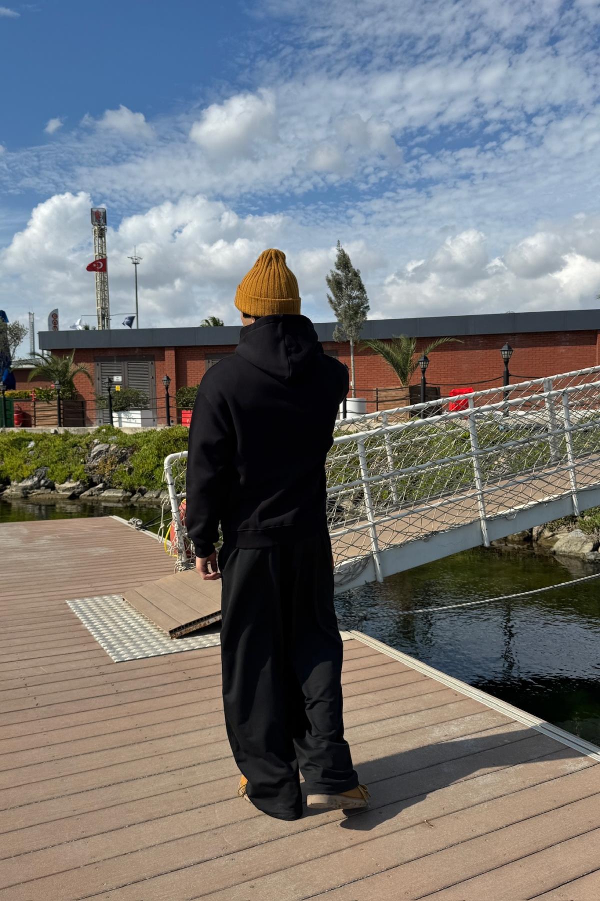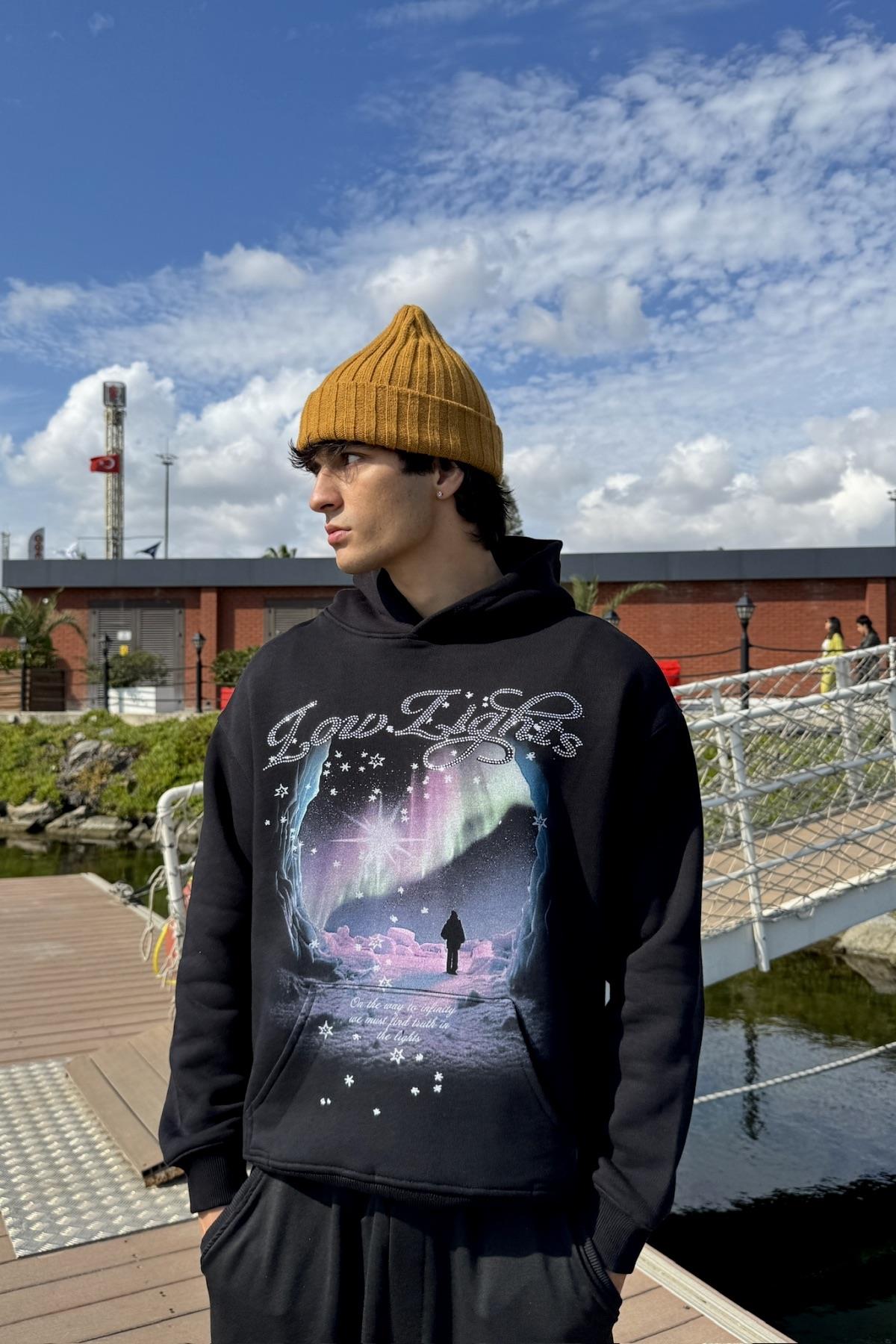 LLS Taş Baskılı Siyah Lilac Oversize Hoodie SW1333 (P-004982)