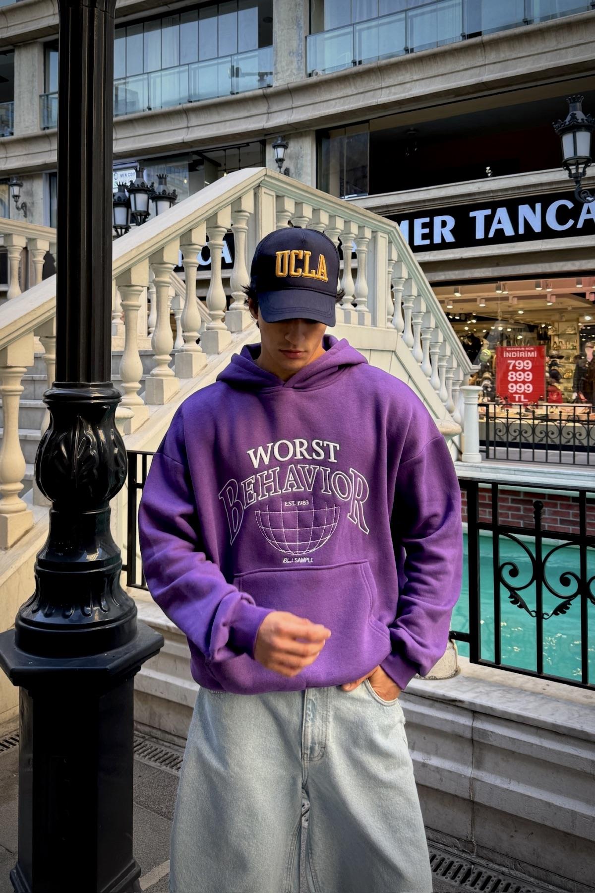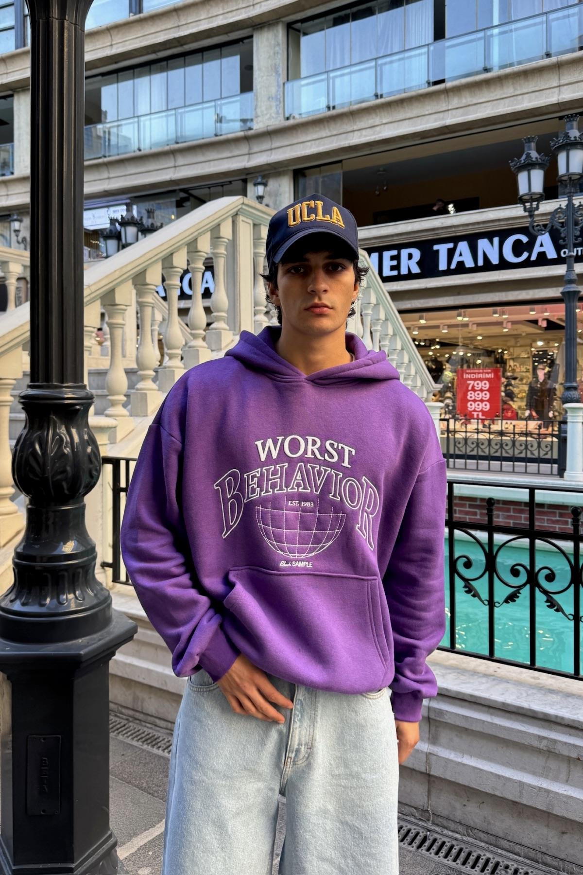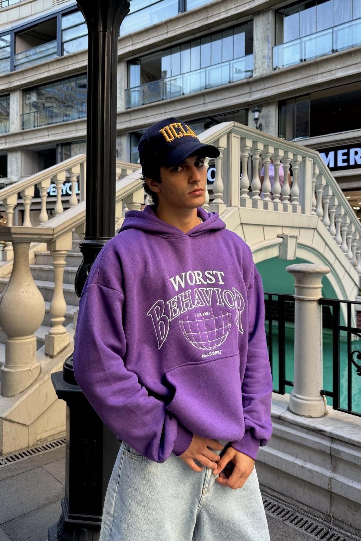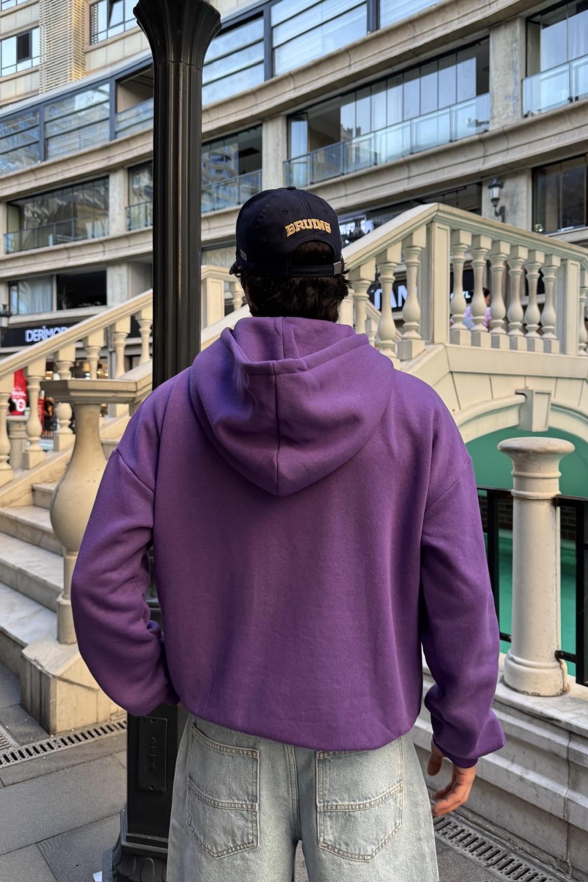 Nakışlı Mor Oversize Worst Hoodie (P-005339)