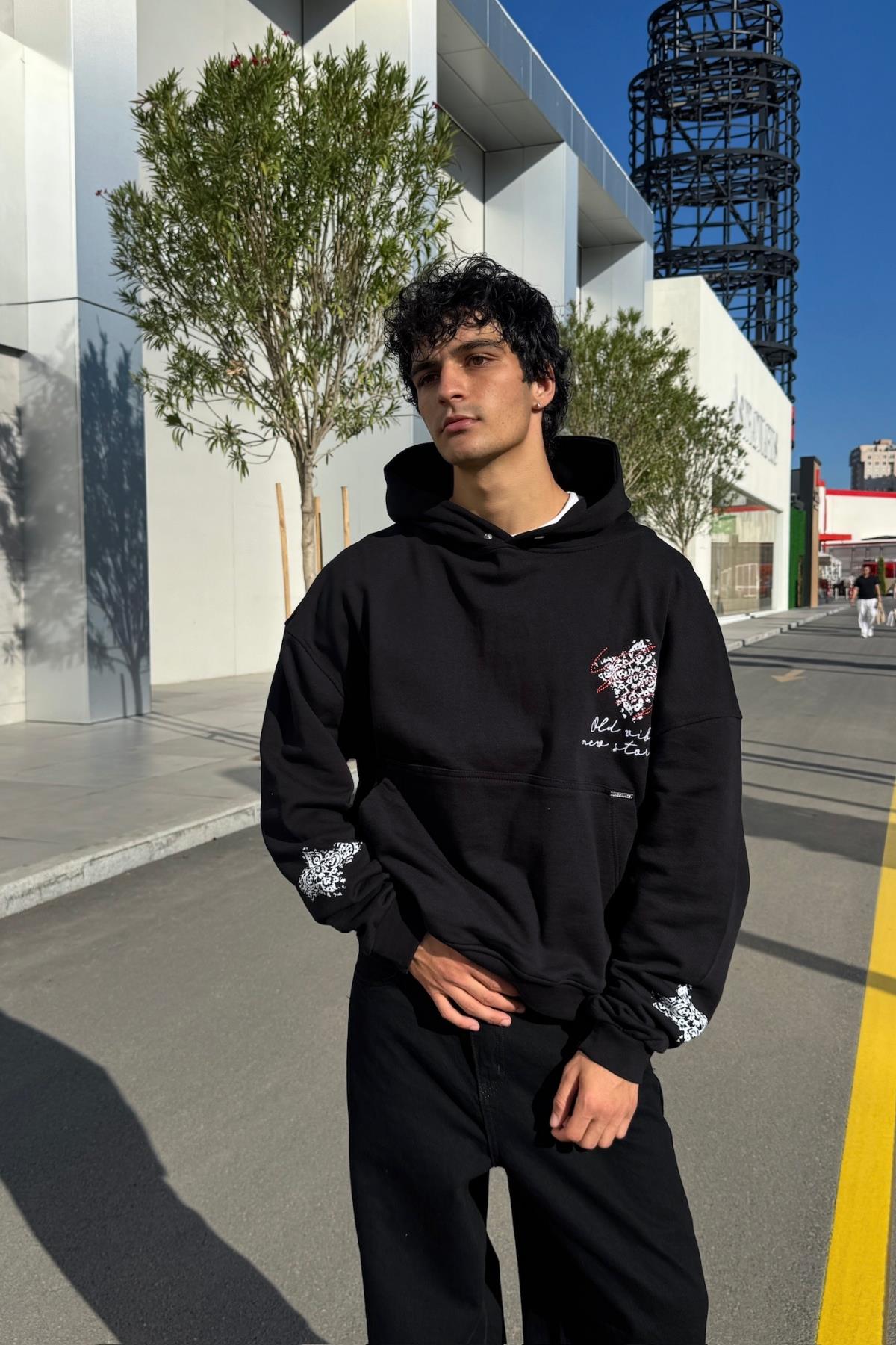 Old Vibes Nakışlı Siyah Oversize Hoodie JC01 (P-006987)