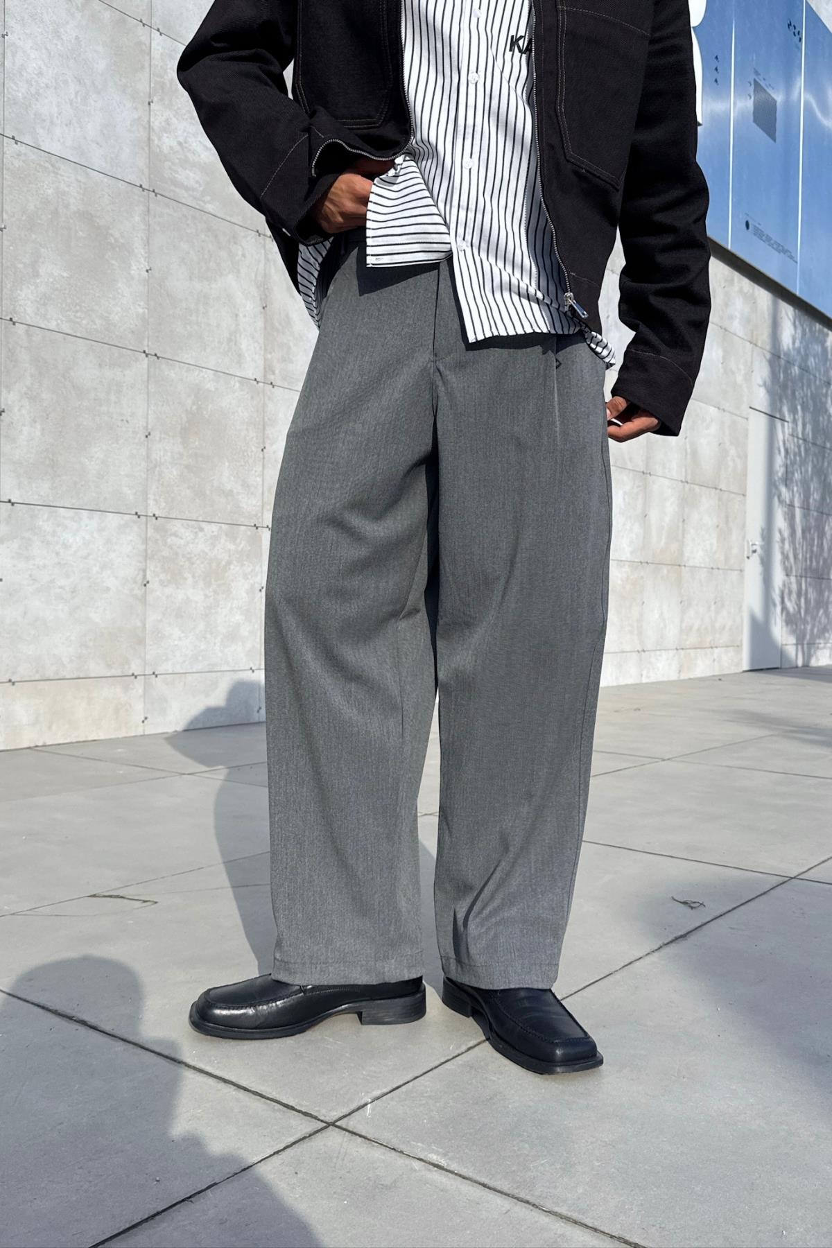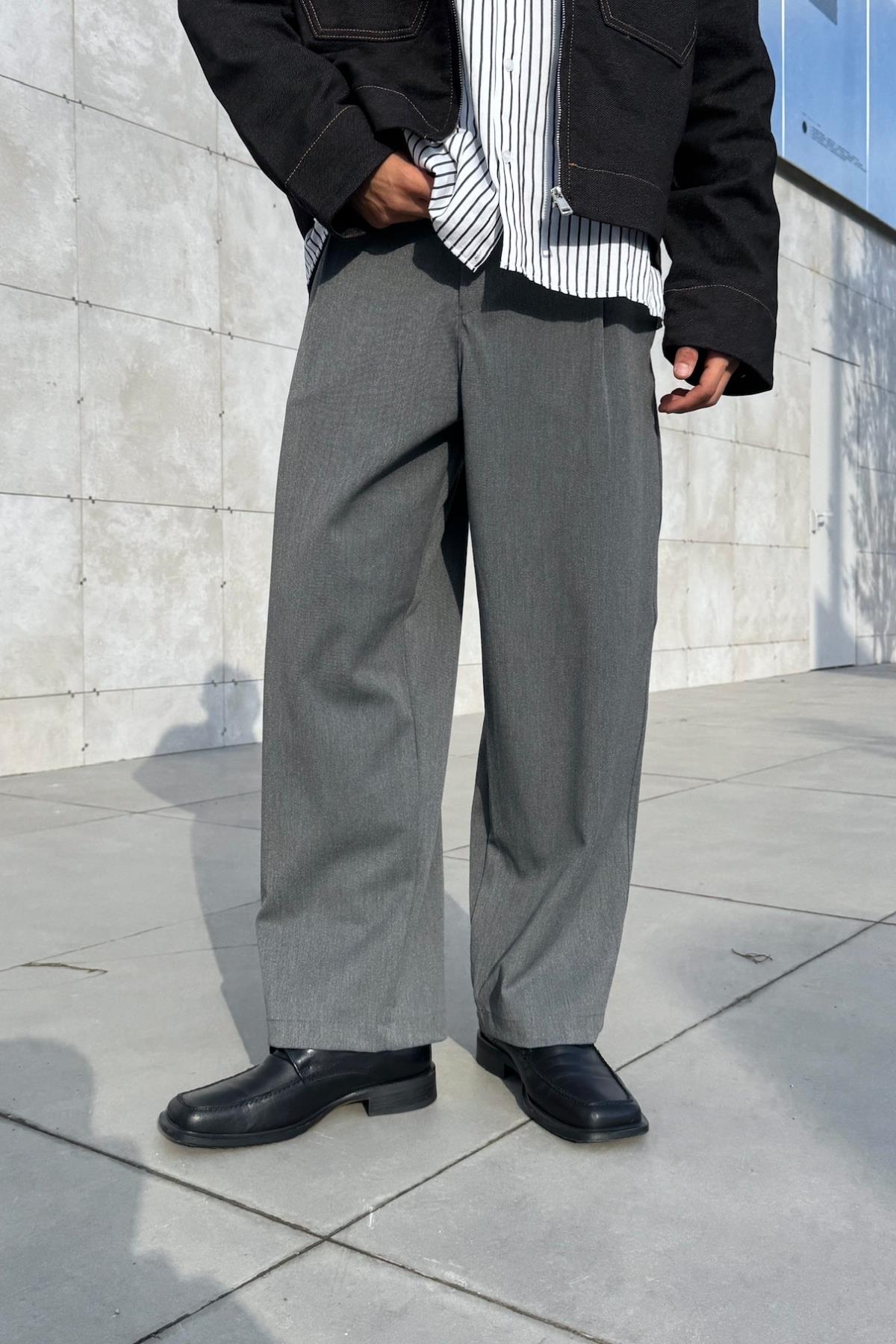 Pile Detay Gri Dokuma Kumaş Pantolon KN01 (P-006977)