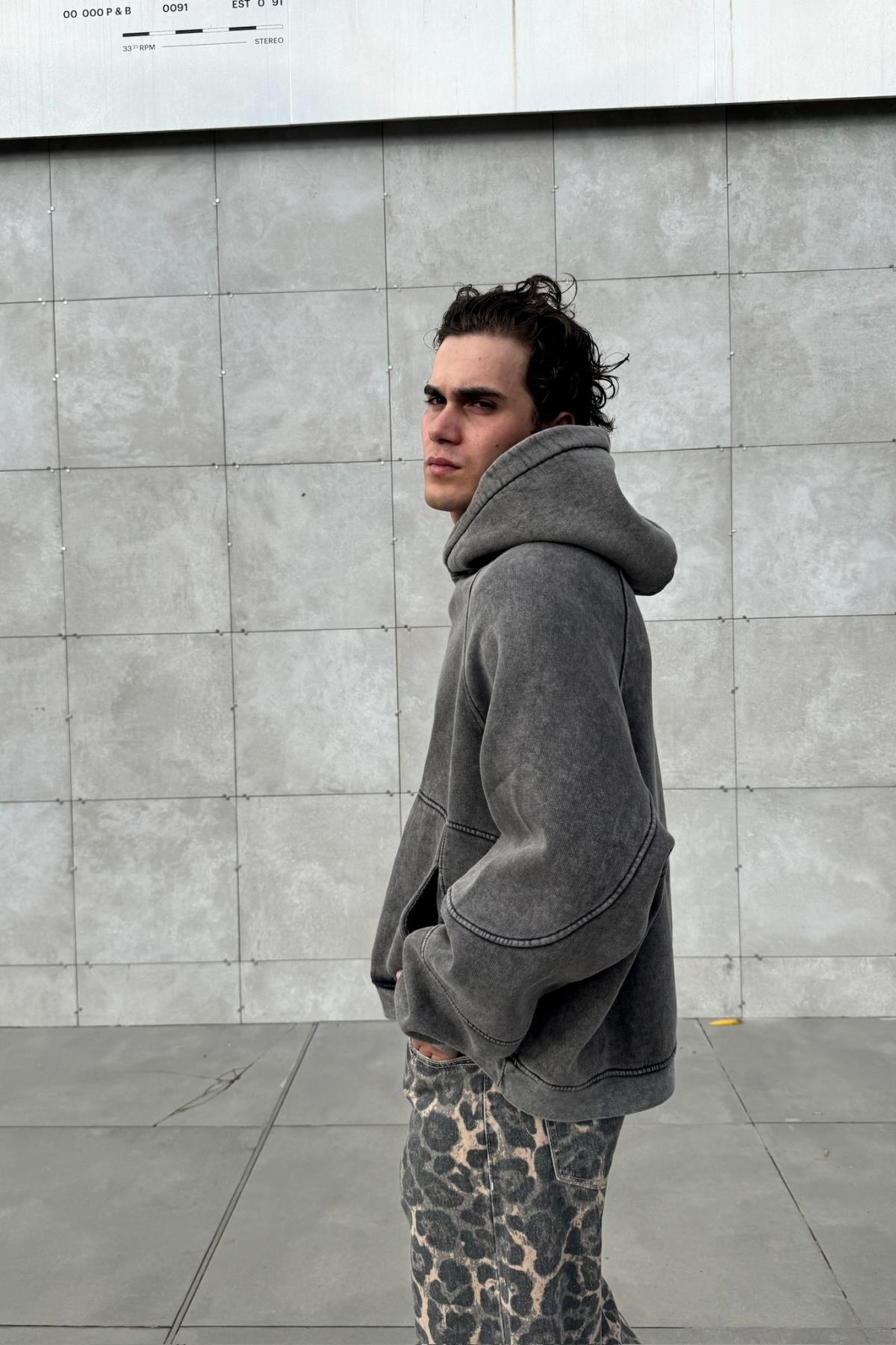 Premium Kumaş Acid Wash Füme Oversize Hoodie JC01 (P-006989)