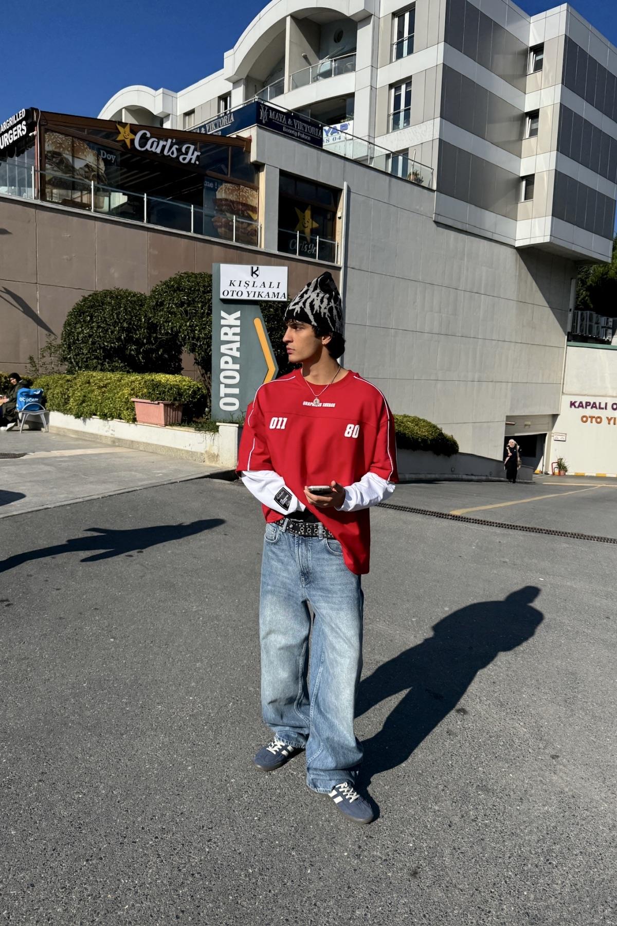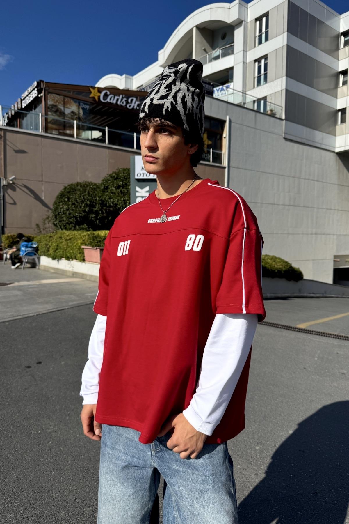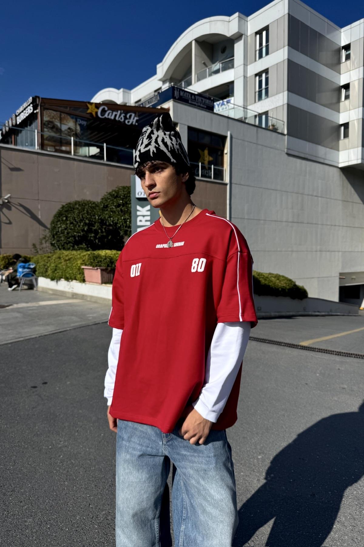 Savage Baskılı Kırmızı Oversize Sweatshirt JC01 (P-006917)