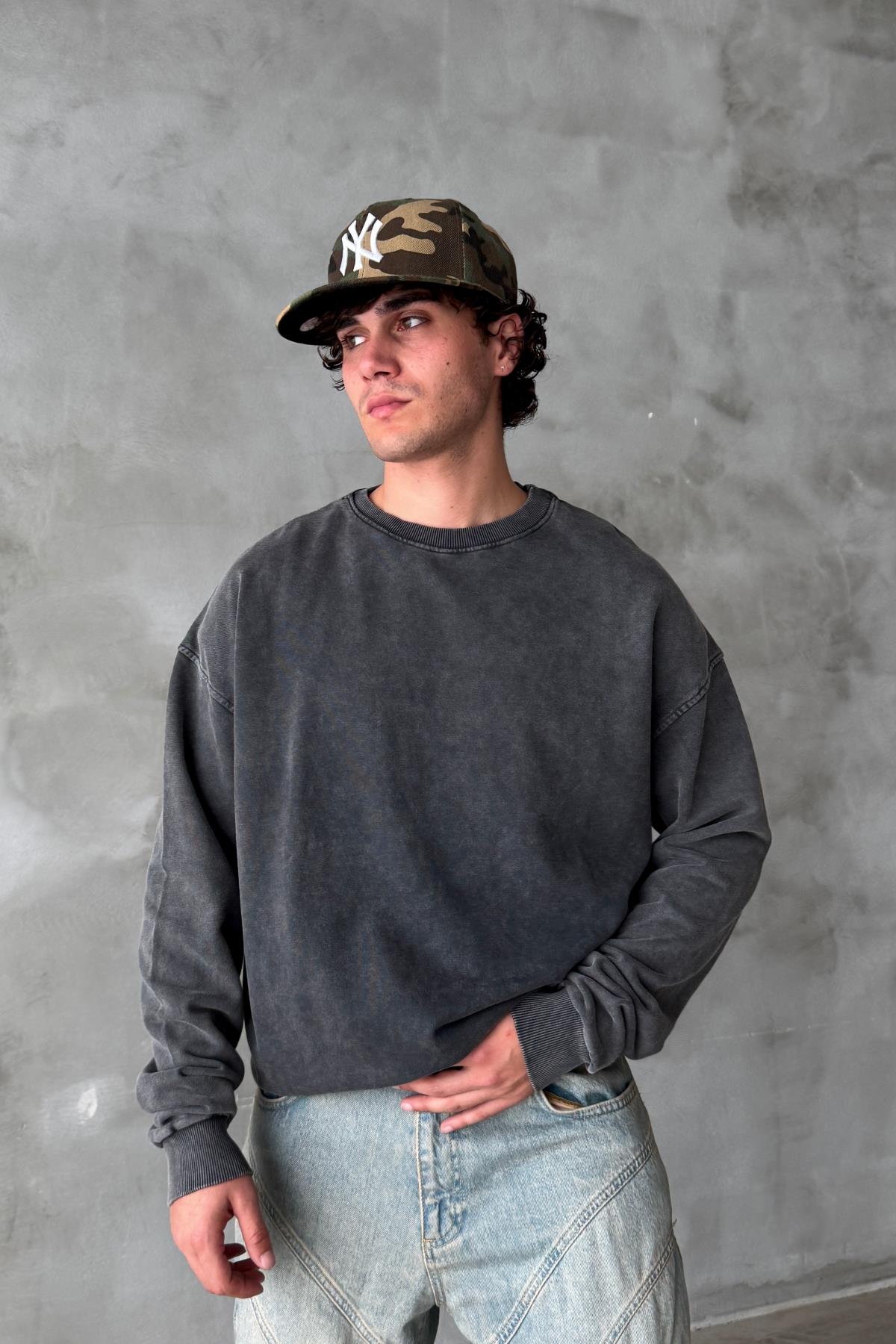 Yıkama Efektli Bisiklet Yaka Oversize Sweatshirt PM01 (P-007006)