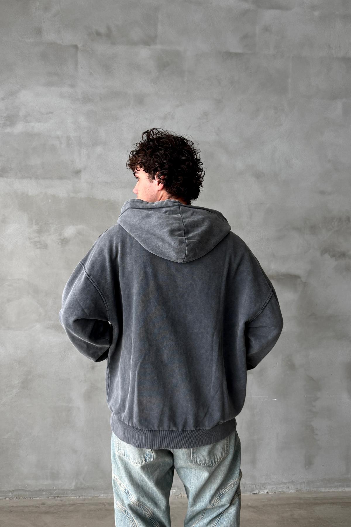 Yıkama Efektli Oversize Zipper Hoodie PM01 (P-007008)