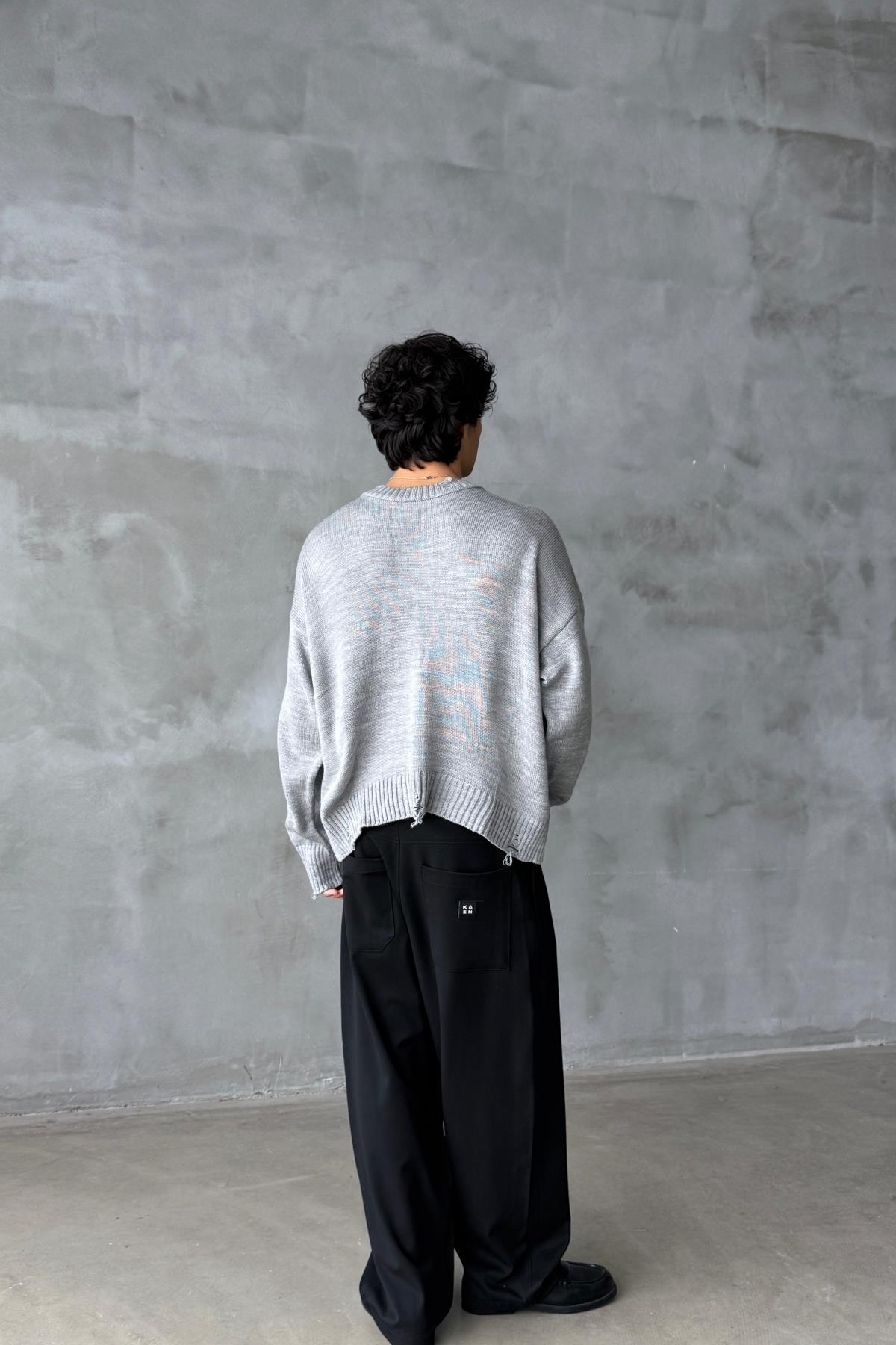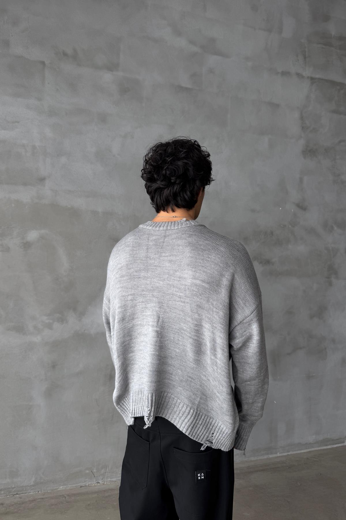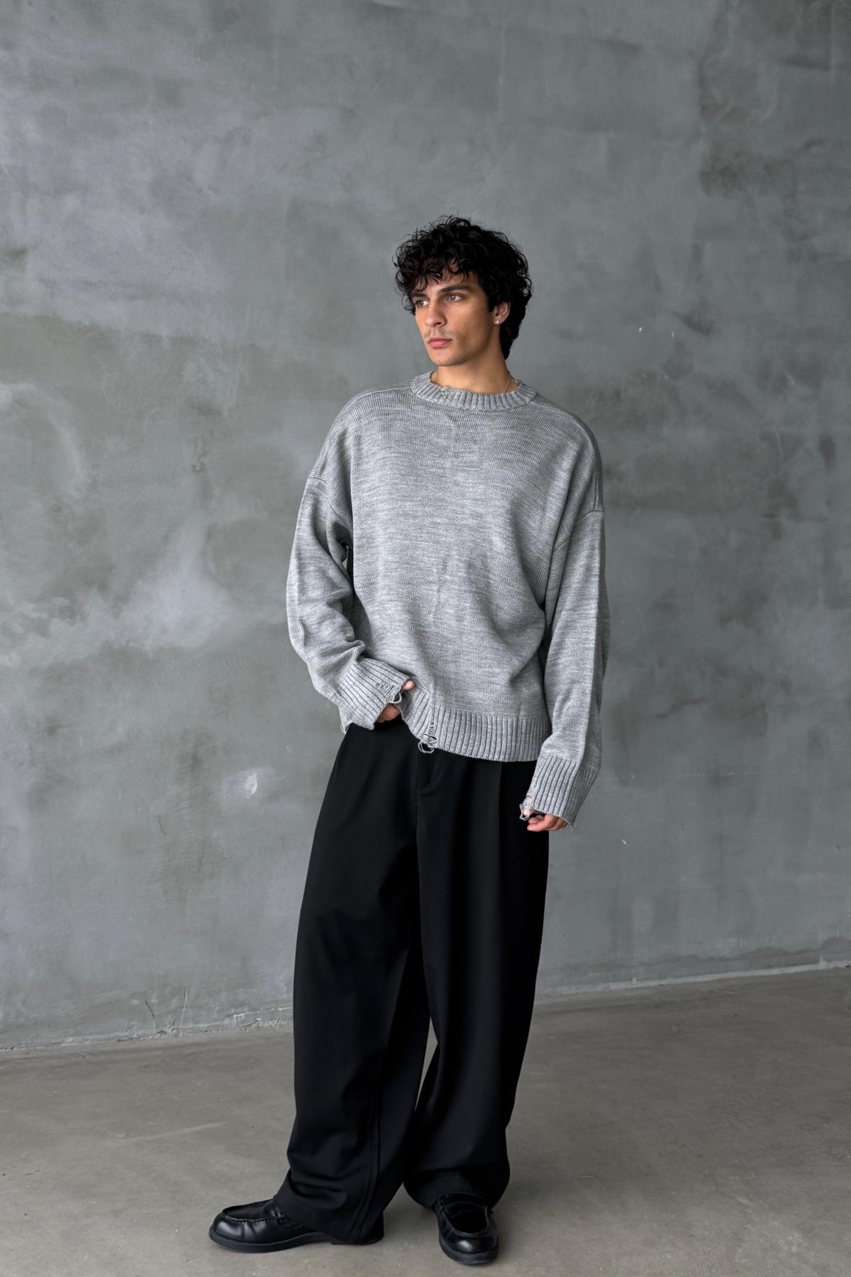 Yırtık Detay Oversize Gri Kazak (P-007028)